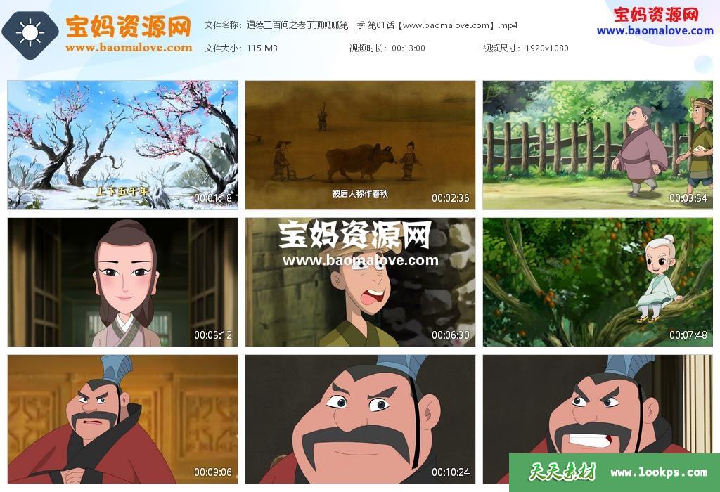 天天资源网收录的动画片《道德三百问之老子顶呱呱》第一季 ,全部50集,国语发音,中文字幕;每集大小约115M,资源总大小5.98G,单集播放时长约13分钟,1080P高清MP4格式,可以在电视机或电脑、平板、IPAD、早教机、手机等各种设备播放,提供百度云网盘下载。
