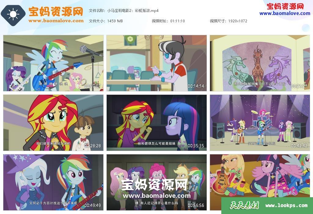 天天资源网收录的动画电影《彩虹小马:小马国女孩之彩虹摇滚 My Little Pony: Equestria Girls – Rainbow Rocks》,国语发音,中文字幕;资源大小约1.42G,播放时长约71分钟,1080P高清MP4格式,可以在电视机或电脑、平板、IPAD、早教机、手机等各种设备播放,提供百度云网盘下载。
