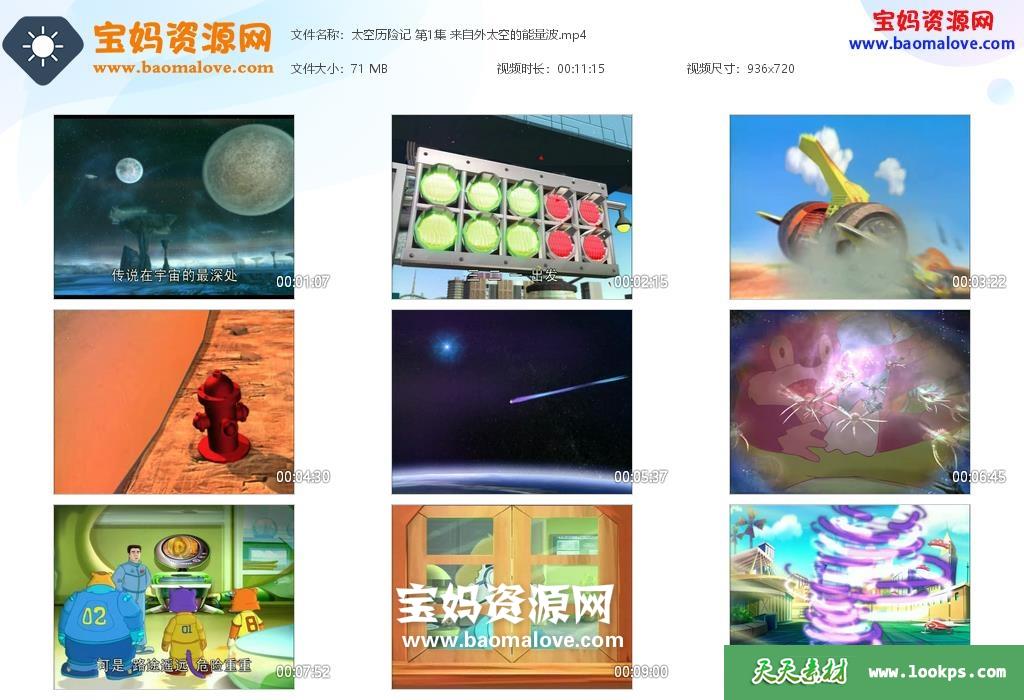 天天资源网收录的动画片《蓝猫淘气3000问之太空历险记》,全部400集,国语发音,中文字幕;每集大小约72M,资源总大小29.5G,单集播放时长约11分钟,720P高清MP4格式,可以在电视机或电脑、平板、IPAD、早教机、手机等各种设备播放,提供百度云网盘下载。