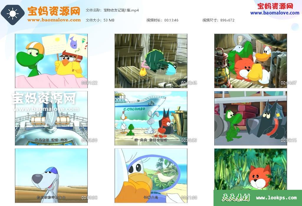 天天资源网收录的动画片《宠物老友记》,全部104集,国语发音,中文字幕;每集大小约50M,资源总大小5.61G,单集播放时长约13分钟,672P标清MP4格式,可以在电视机或电脑、平板、IPAD、早教机、手机等各种设备播放,提供百度云网盘下载。