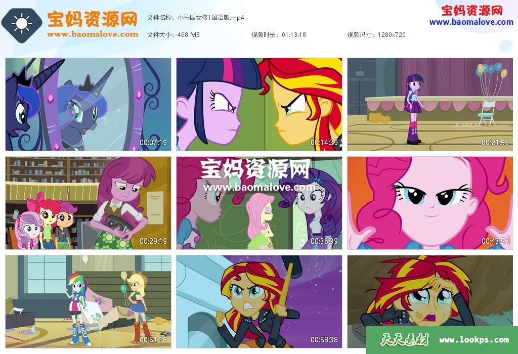 天天资源网收录的动画电影《彩虹小马:小马国女孩 My Little Pony: Equestria Girls》,国语发音,无字幕;资源大小约468M,播放时长约73分钟,720P高清MP4格式,可以在电视机或电脑、平板、IPAD、早教机、手机等各种设备播放,提供百度云网盘下载。