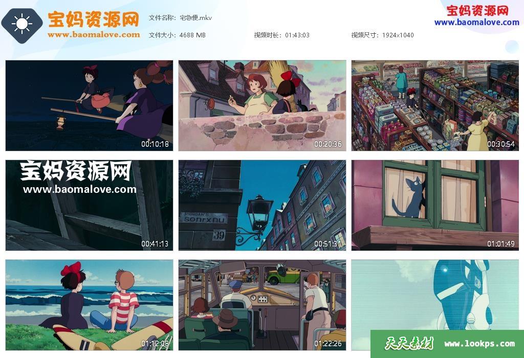 天天资源网收录的动画电影《魔女宅急便》,台/粤/日/英/法/德语发音,中文字幕;资源大小约4.57G,1080P高清MKV格式,可以在电视机或电脑、平板、IPAD、早教机、手机等各种设备播放,提供百度云网盘下载。