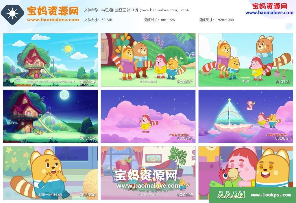天天资源网收录的动画片《粉妞妞和金豆豆》,全部26集,国语发音,中文字幕;每集大小约34M,资源总大小约0.97G,单集播放时长约10分钟,1080P高清MP4格式,可以在电视机或电脑、平板、IPAD、早教机、手机等各种设备播放,提供百度云网盘下载。