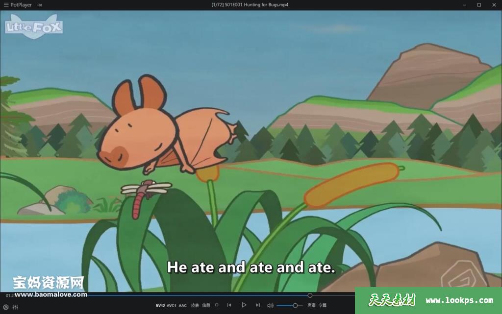 天天资源网收录的动画片《Bat and Friends》小蝙蝠和朋友们英文版,全部72集,英语发音,外挂英文字幕(可下载后使用播放器选择设置字幕或者关闭字幕);每集大小约35M,资源总大小2.61G,单集播放时长约2~3分钟,1080P高清MP4格式,可以在电视机或电脑、平板、IPAD、早教机、手机等各种设备播放,提供百度云网盘下载。