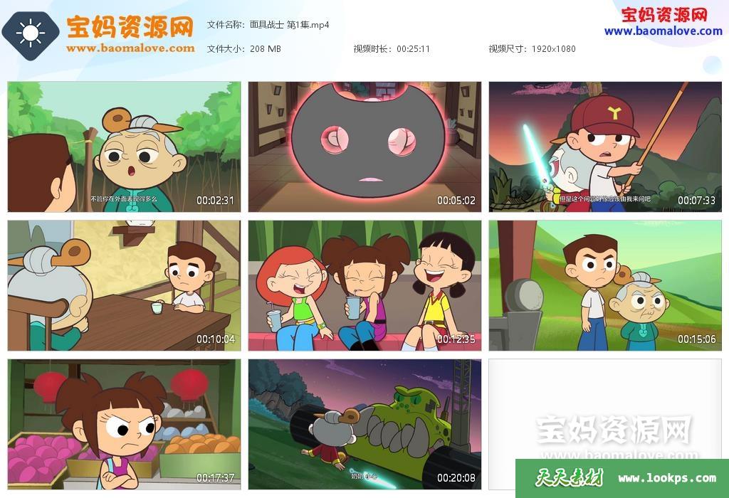 天天资源网收录的动画片《面具战士》,全部26集,国语发音,中文字幕;每集大小约200M,资源总大小5.2G,单集播放时长约14分钟,1080P高清MP4格式,可以在电视机或电脑、平板、IPAD、早教机、手机等各种设备播放,提供百度云网盘下载。