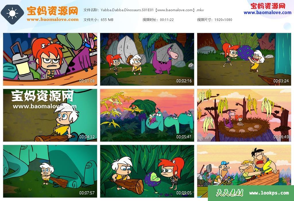 天天资源网收录的动画片《Yabba-Dabba Dinosaurs》第一季,全部13集,英语发音,内置英文字幕(可以下载后使用播放器选择字幕或者关闭字幕);每集大小约645M,资源总大小8.3G,单集播放时长约11分钟,1080P高清MKV格式,可以在电视机或电脑、平板、IPAD、早教机、手机等各种设备播放,提供百度云网盘下载。