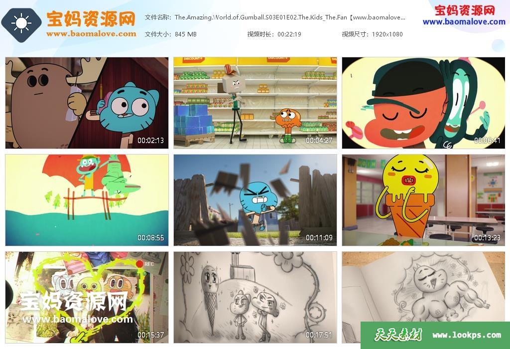 天天资源网收录的动画片《The Amazing World of Gumball》阿甘妙世界英文版 第三季,全部40集,英语发音,内置英文字幕(可以下载后使用播放器选择设置字幕或者关闭字幕);每集大小约430M,资源总大小16.4G,单集播放时长约11分钟,1080P高清MKV格式,可以在电视机或电脑、平板、IPAD、早教机、手机等各种设备播放,提供百度云网盘下载。