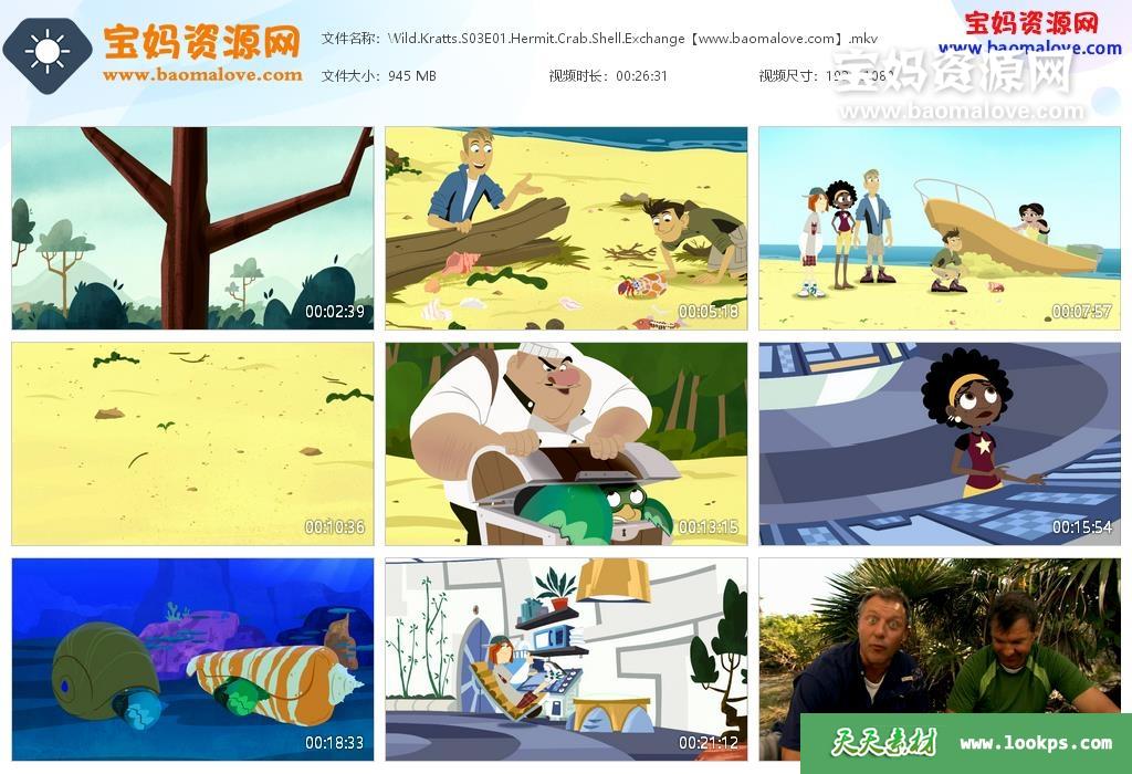 天天资源网收录的动画片《Wild Kratts》动物兄弟英文版 第三季,全部26集,英语发音,内置英文字幕(可以下载后使用播放器选择设置字幕或者关闭字幕);每集大小约830M,资源总大小22.6G,单集播放时长约26分钟,1080P高清MKV格式,可以在电视机或电脑、平板、IPAD、早教机、手机等各种设备播放,提供百度云网盘下载。
