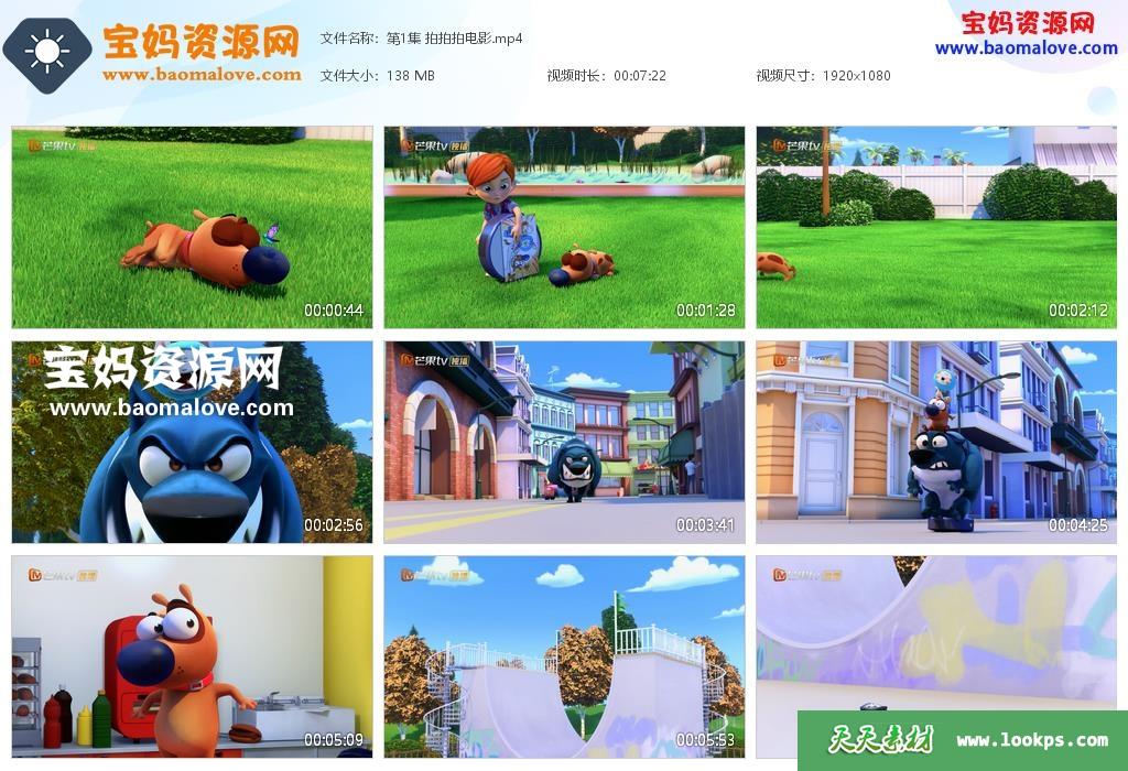 天天资源网收录的动画片《拍拍小狗》Pat the Dog中文版 第一季,全部78集,国语发音,无字幕;每集大小约130M,总大小9.07G,单集播放时长约7分钟,1080P高清MP4格式,可以在电视机或电脑、平板、IPAD、早教机、手机等各种设备播放,提供百度云网盘下载。