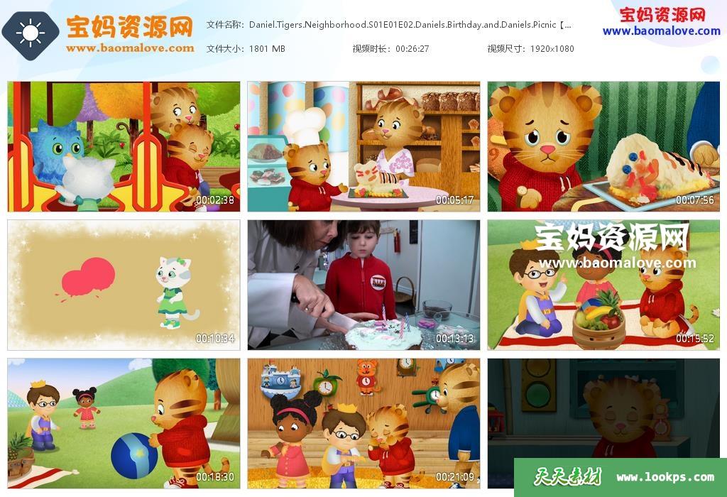 天天资源网收录的动画片《Daniel Tiger’s Neighborhood》小老虎丹尼尔英文版 第一季,全部78集,英语发音,内置英文字幕(可以下载后使用播放器选择设置字幕或者关闭字幕);每集大小约820M,资源总大小68.4G,单集播放时长约13分钟,1080P高清MKV格式,可以在电视机或电脑、平板、IPAD、早教机、手机等各种设备播放,提供百度云网盘下载。