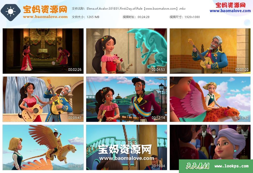 天天资源网收录的动画片《Elena of Avalor》艾莲娜公主英文版 第一季,全部25集,英语发音,内置英文字幕(可以下载后使用播放器选择设置字幕或者关闭字幕);每集大小约840M,资源总大小25.8G,单集播放时长约24分钟,1080P高清MKV格式,可以在电视机或电脑、平板、IPAD、早教机、手机等各种设备播放,提供百度云网盘下载。