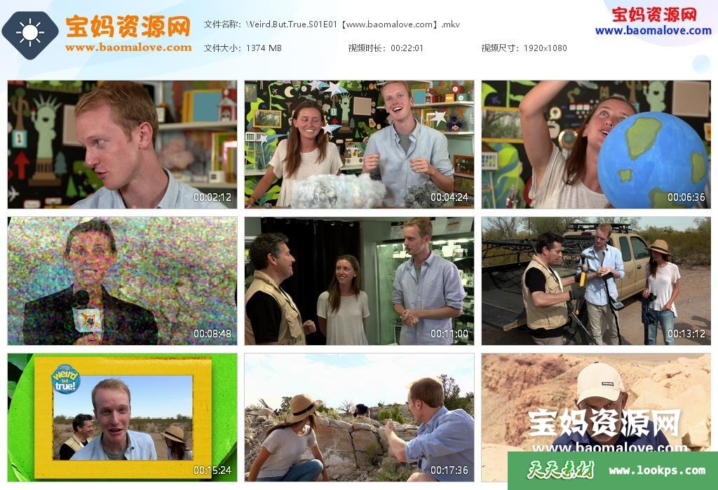 天天资源网收录的纪录片《Weird But True》国家地理真实见闻英文版 第一季 ,全部17集,英语发音,内置英文字幕(可以下载后使用播放器选择设置字幕或者关闭字幕);每集大小约1.34G,资源总大小22.8G,单集播放时长约22分钟,1080P高清MKV格式,可以在电视机或电脑、平板、IPAD、早教机、手机等各种设备播放,提供百度云网盘下载。