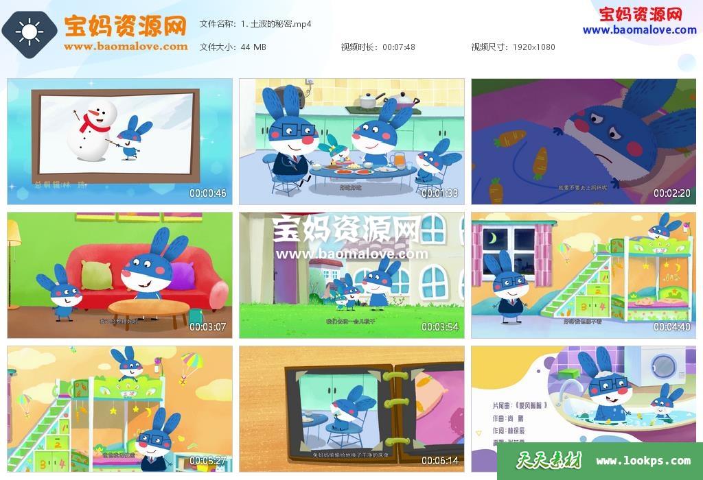 天天资源网收录的动画片《土波兔之好好习惯》,全部26集,国语发音,中文字幕;每集大小约44M,资源总大小1.35G,单集播放时长约7分钟,1080P高清MP4格式,可以在电视机或电脑、平板、IPAD、早教机、手机等各种设备播放,提供百度云网盘下载。