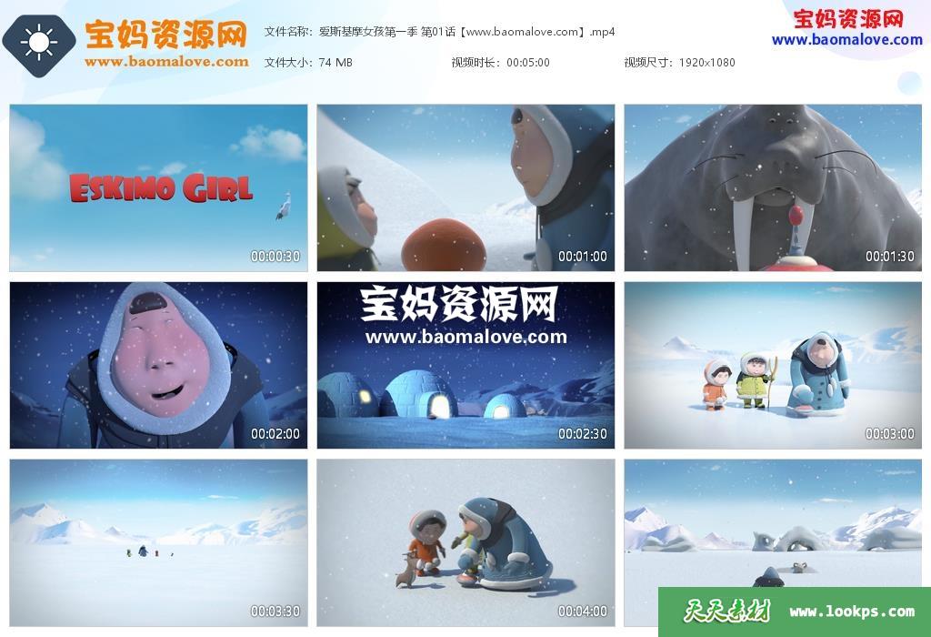 天天资源网收录的动画片《爱斯基摩女孩 Eskimo Girl》第一季,全部26集,默片无对白,无字幕;每集大小约65M,资源总大小2.04G,单集播放时长约5分钟,1080P高清MP4格式,可以在电视机或电脑、平板、IPAD、早教机、手机等各种设备播放,提供百度网盘下载。