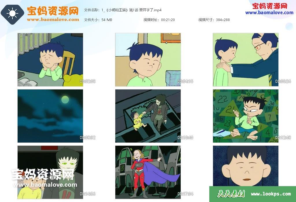 天天资源网收录的动画片《小明和王猫》,全部13集,国语发音,无字幕;每集大小约55M,资源总大小722M,单集播放时长约21分钟,1080P高清MP4格式,可以在电视机或电脑、平板、IPAD、早教机、手机等各种设备播放,提供百度云网盘下载。