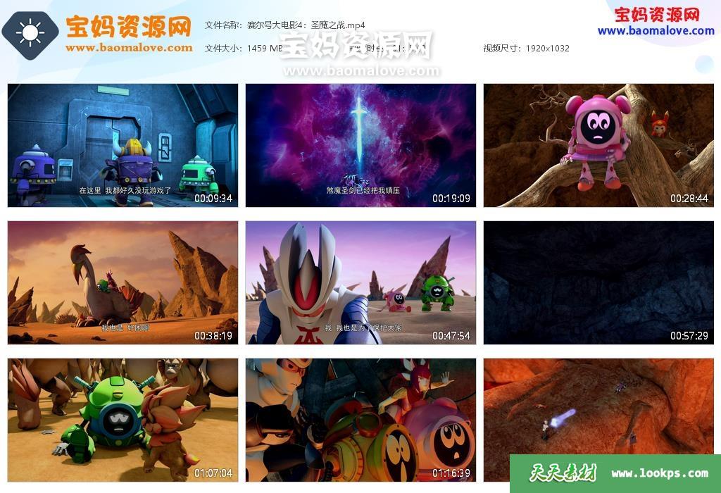 天天资源网收录的动画电影《赛尔号大电影4圣魔之战》,国语发音,中文字幕;资源大小约1.42G,播放时长约96分钟,1080P高清MP4格式,可以在电视机或电脑、平板、IPAD、早教机、手机等各种设备播放,提供百度云网盘下载。