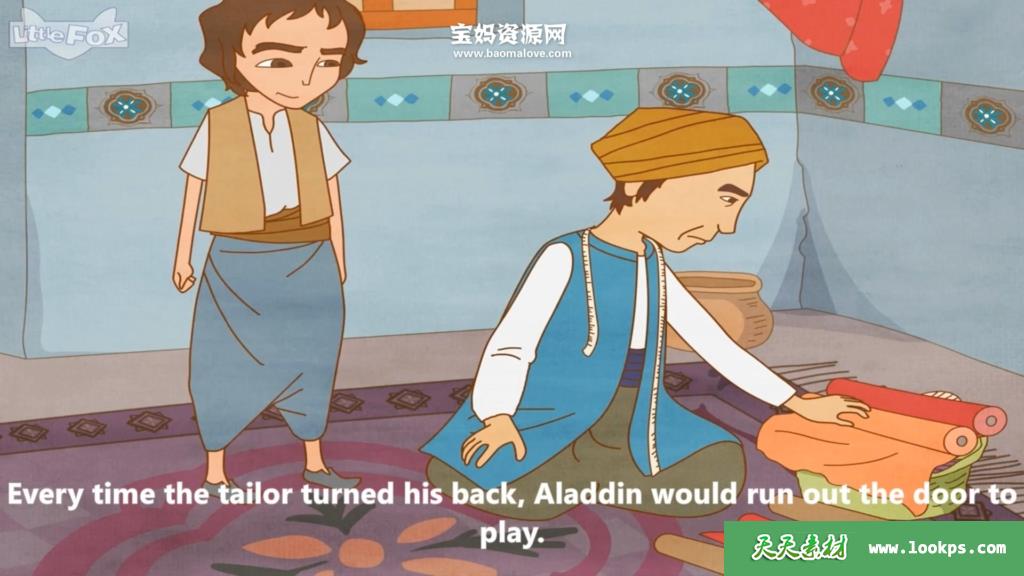 Little Fox 分级动画 L5 阿拉丁神灯 Aladdin and His Wonderful Lamp改编自著名阿拉伯童话故事《一千零一夜》中的同名章节。主人公阿拉丁是穷裁缝的儿子。一天,他意外发现了一个魔法神灯。这个魔法神灯能帮助阿拉丁逃出邪恶魔术师马格里布的魔掌,赢得美丽公主的芳心吗?