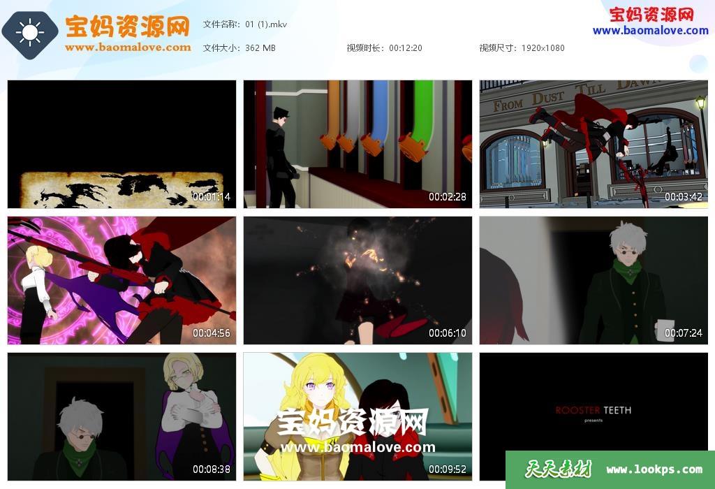 天天资源网收录的动画片《红白黑黄 RWBY》第一季,全部10集,国英双语发音,中文字幕;每集大小320M,资源总大小3.36G,单集播放时长约12分钟,1080P高清MKV格式,可以在电视机或电脑、平板、IPAD、早教机、手机等各种设备播放,提供百度云网盘下载。