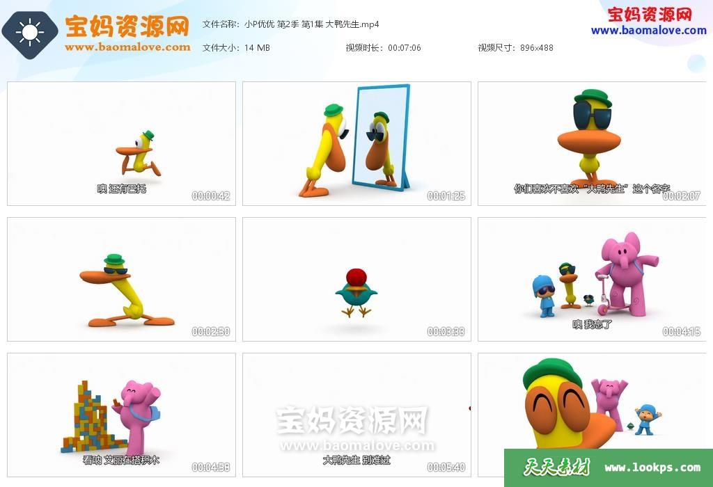 天天资源网收录的动画片《小P优优》POCOYO中文版 第二季,全部52集,国语发音,中文字幕;每集大小约15M,资源总大小784M,单集播放时长约7分钟,488P标清MP4格式,可以在电视机或电脑、平板、IPAD、早教机、手机等各种设备播放,提供百度云网盘下载。