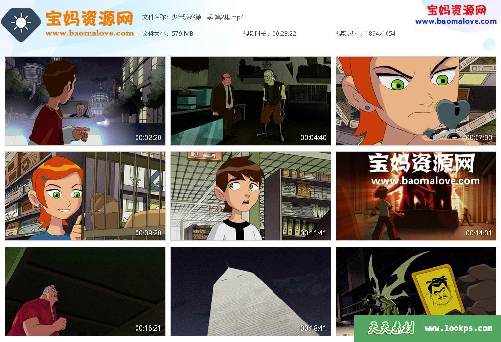 天天资源网收录的动画片《少年骇客》Ben 10中文版 第一季 ,全部13集,国语发音,无字幕;每集大小约500M,总大小6.71G,单集播放时长约23分钟,1080P高清MP4格式,可以在电视机或电脑、平板、IPAD、早教机、手机等各种设备播放,提供百度云网盘下载。