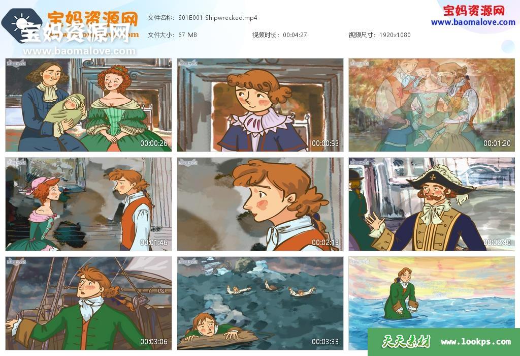 天天资源网收录的动画片《Gulliver’s Travels》格列佛游记英文版,全部24集,英语发音,外挂英文字幕(可下载后使用播放器选择设置字幕或者关闭字幕);每集大小约65M,资源总大小1.57G,单集播放时长约4分钟,1080P高清MP4格式,可以在电视机或电脑、平板、IPAD、早教机、手机等各种设备播放,提供百度云网盘下载。