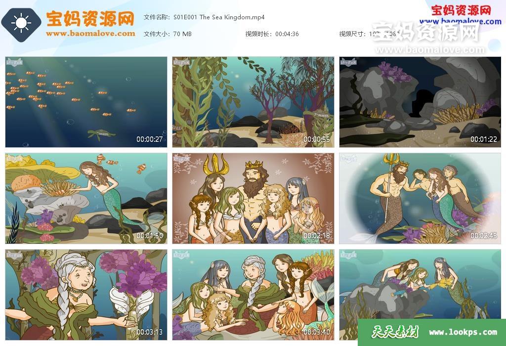 天天资源网收录的动画片《The Little Mermaid》小美人鱼英文版,全部16集,英语发音,外挂英文字幕(可下载后使用播放器选择设置字幕或者关闭字幕);每集大小约80M,资源总大小1.12G,单集播放时长约4~5分钟,1080P高清MP4格式,可以在电视机或电脑、平板、IPAD、早教机、手机等各种设备播放,提供百度云网盘下载。
