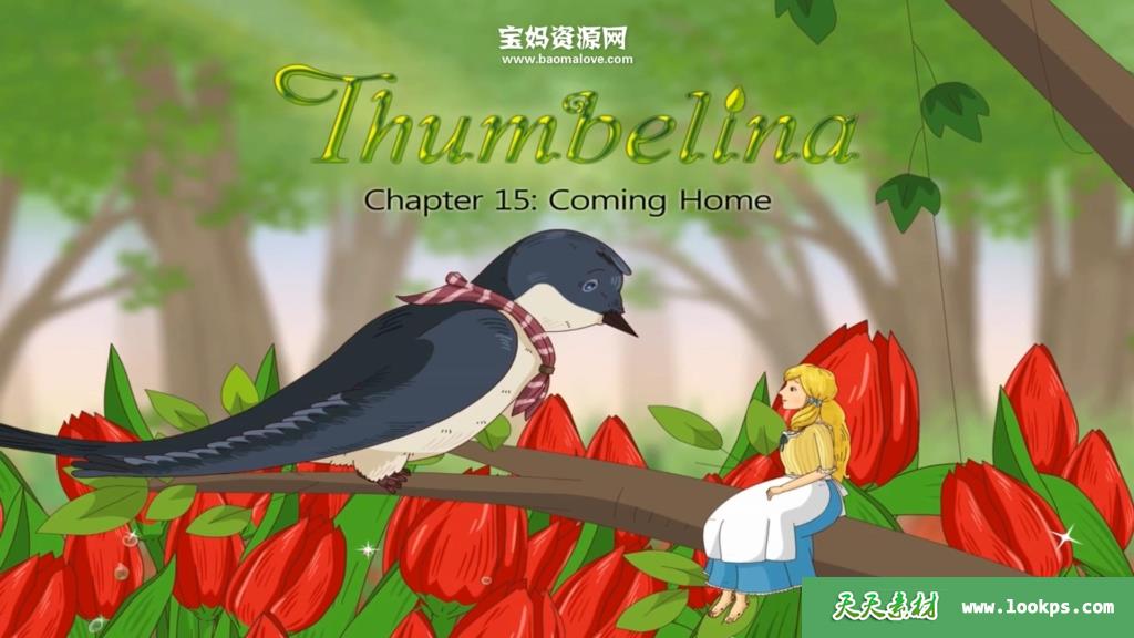 天天资源网收录的动画片《Thumbelina》拇指姑娘英文版,全部16集,英语发音,外挂英文字幕(可下载后使用播放器选择设置字幕或者关闭字幕);每集大小约72M,资源总大小1.19G,单集播放时长约5分钟,1080P高清MP4格式,可以在电视机或电脑、平板、IPAD、早教机、手机等各种设备播放,提供百度云网盘下载。