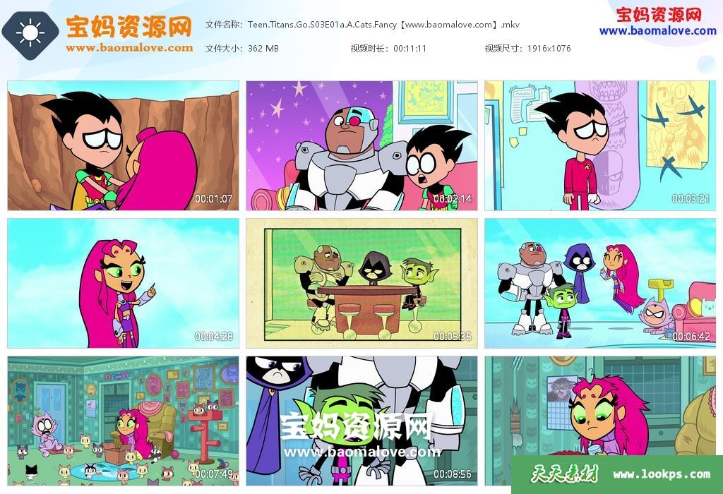 天天资源网收录的动画片《Teen Titans Go!》少年泰坦出击英文版 第三季,全部53集,英语发音,内置英文字幕(可以下载后使用播放器选择字幕或者关闭字幕);每集大小约380M,资源总大小20.4G,单集播放时长约11分钟,1080P高清MKV格式,可以在电视机或电脑、平板、IPAD、早教机、手机等各种设备播放,提供百度云网盘下载。