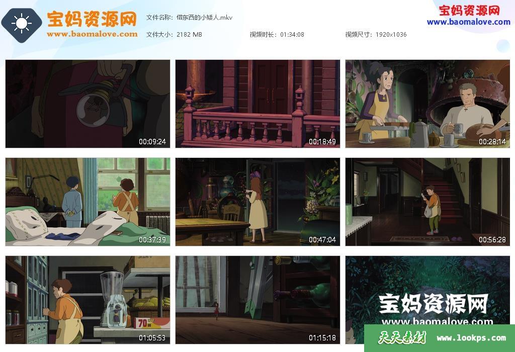天天资源网收录的动画电影《借东西的小矮人》,台/粤/日/法/韩语发音,中文字幕;资源大小约2.13G,1080P高清MKV格式,可以在电视机或电脑、平板、IPAD、早教机、手机等各种设备播放,提供百度云网盘下载。