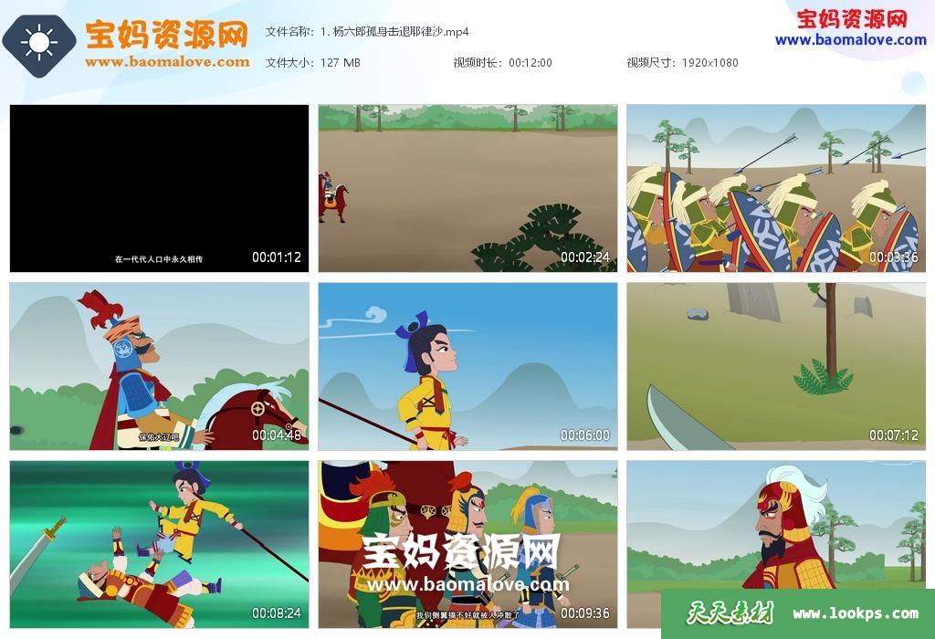 天天资源网收录的动画片《亿唐皮影戏 杨家将》,全部140集,国语发音,中文字幕;每集大小约90M,资源总大小13.2G,单集播放时长约12分钟,1080P高清MP4格式,可以在电视机或电脑、平板、IPAD、早教机、手机等各种设备播放,提供百度云网盘下载。