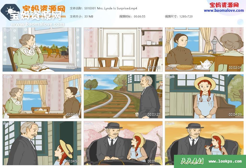 天天资源网收录的动画片《Anne》安妮英文版,全部41集,英语发音,外挂英文字幕(可下载后使用播放器选择设置字幕或者关闭字幕);每集大小约33M,资源总大小1.4G,单集播放时长约7分钟,720P高清MP4格式,可以在电视机或电脑、平板、IPAD、早教机、手机等各种设备播放,提供百度云网盘下载。