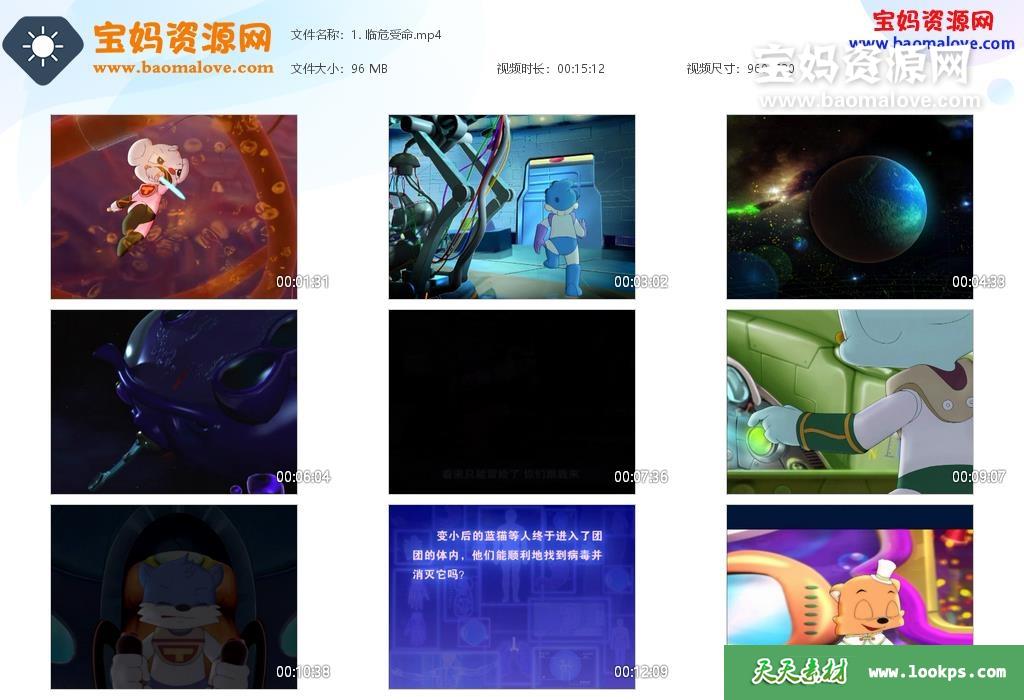 天天资源网收录的动画片《蓝猫健康特攻队》,全部104集,国语发音,中文字幕;每集大小约75M,资源总大小8.16G,单集播放时长约13分钟,720P高清MP4格式,可以在电视机或电脑、平板、IPAD、早教机、手机等各种设备播放,提供百度云网盘下载。
