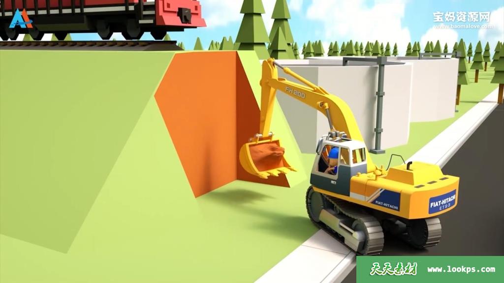 50. 挖土机 翻斗车 建造火车轨道