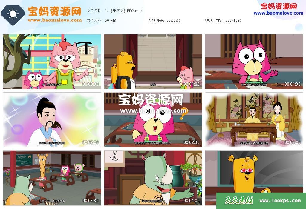 天天资源网收录的动画片《水木幼教学堂系列之千字文》,全部63集,国语发音,中文字幕;每集大小约45M,资源总大小2.93G,单集播放时长约5分钟,1080P高清MP4格式,可以在电视机或电脑、平板、IPAD、早教机、手机等各种设备播放,提供百度云网盘下载。