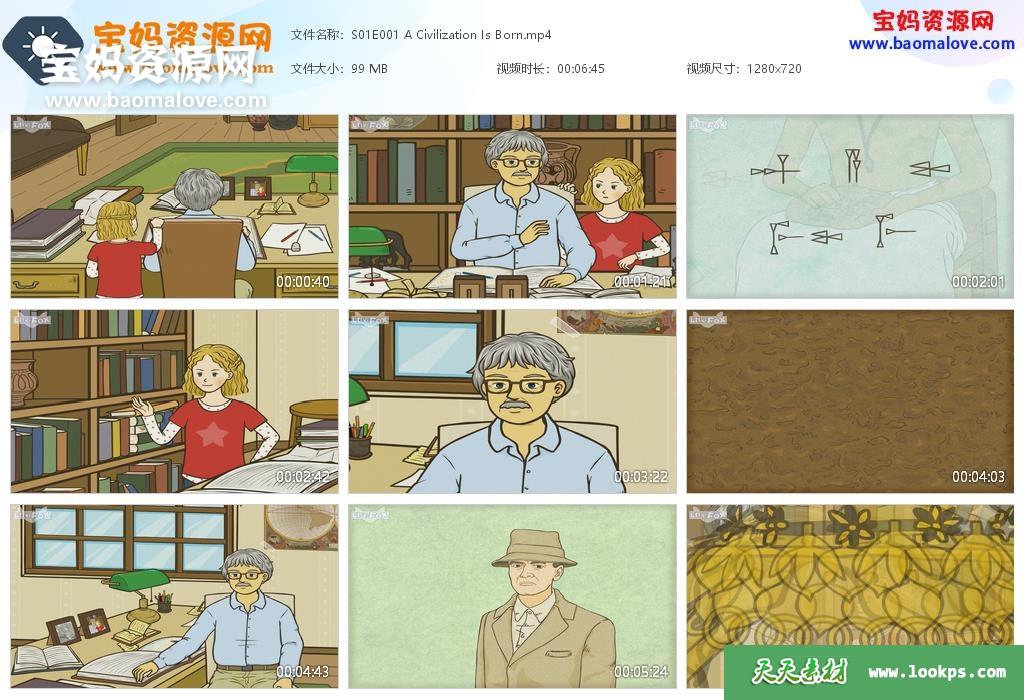 天天资源网收录的动画片《Grandpa’s World History》爷爷的世界史英文版,全部20集,英语发音,外挂英文字幕(可下载后使用播放器选择设置字幕或者关闭字幕);每集大小约68M,资源总大小1.4G,单集播放时长约7~8分钟,720P高清MP4格式,可以在电视机或电脑、平板、IPAD、早教机、手机等各种设备播放,提供百度云网盘下载。