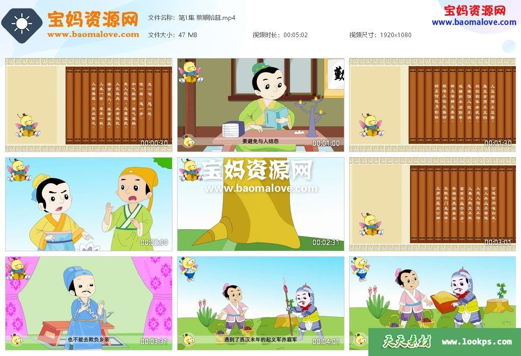 天天资源网收录的动画片《小笨熊之增广贤文》,全部50集,国语发音,中文字幕;每集大小约30M,资源总大小1.63G,单集播放时长约3~5分钟,1080P高清MP4格式,可以在电视机或电脑、平板、IPAD、早教机、手机等各种设备播放,提供百度云网盘下载。