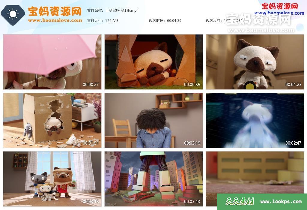 天天资源网收录的动画片《宝多家族 Botos Family》 ,全部26集,默片无对白,无字幕;资源总大小2.6G,单集播放时长约4分钟,1080P高清MP4格式,可以在电视机或电脑、平板、IPAD、早教机、手机等各种设备播放,提供百度网盘下载。