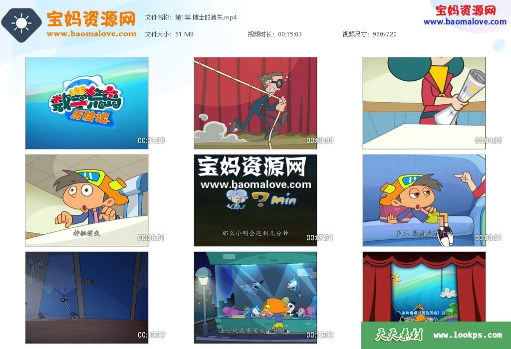 天天资源网收录的动画片《数学荒岛历险记》第一季,全部40集,国语发音,中文字幕;每集大小约50M,资源总大小2.08G,单集播放时长约15分钟,720P高清MP4格式,可以在电视机或电脑、平板、IPAD、早教机、手机等各种设备播放,提供百度云网盘下载。