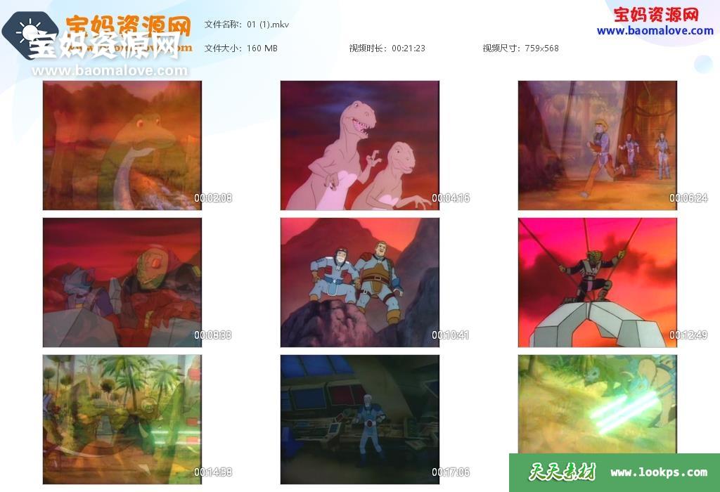 天天资源网收录的动画片《超霸恐龙 Dino Riders》,全部13集,国英双语发音,无字幕;每集大小约158M,资源总大小2G,单集播放时长约21分钟,568P标清MKV格式,可以在电视机或电脑、平板、IPAD、早教机、手机等各种设备播放,提供百度云网盘下载。