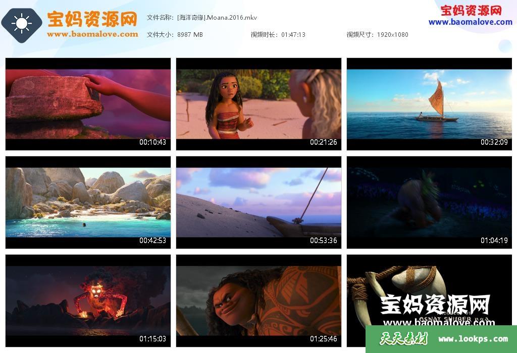 天天资源网收录的动画电影《海洋奇缘 Moana》,国英双语发音,内置中英文字幕(可以下载后使用播放器选择设置字幕或者关闭字幕);资源大小约8.77G,1080P高清MKV格式,可以在电视机或电脑、平板、IPAD、早教机、手机等各种设备播放,提供百度云网盘下载。