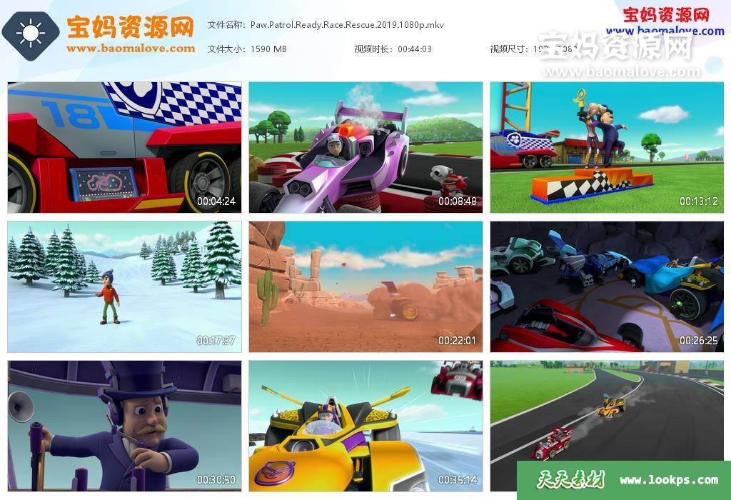 天天资源网收录的动画电影《汪汪队立大功:极速赛车救援 Paw Patrol: Ready Race Rescue》,英语发音,内置英文字幕(可以下载后使用播放器选择设置字幕或者关闭字幕);资源大小约1.55G,播放时长约44分钟,1080P高清MKV格式,可以在电视机或电脑、平板、IPAD、早教机、手机等各种设备播放,提供百度云网盘下载。