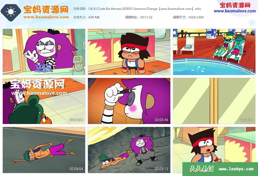 天天资源网收录的动画片《OK K.O.! Let’s Be Heroes》成为英雄吧英文版 第二季,全部37集,英语发音,无字幕;每集大小约245M,资源总大小16.1G,单集播放时长约11分钟,1080P高清MKV格式,可以在电视机或电脑、平板、IPAD、早教机、手机等各种设备播放,提供百度云网盘下载。