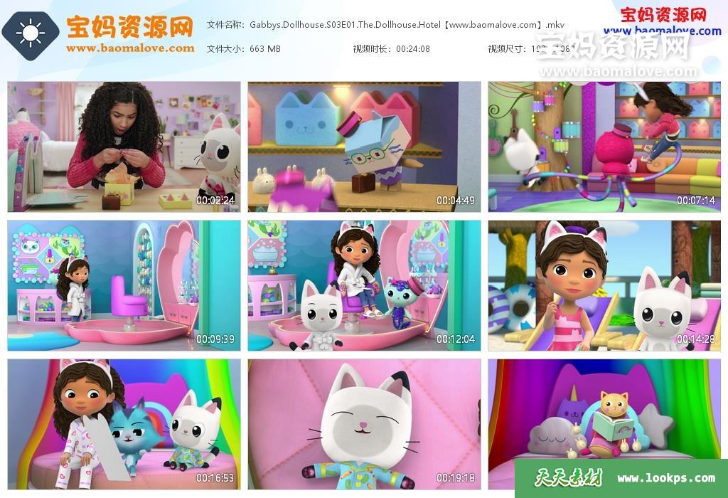 天天资源网收录的动画片《Gabby’s Dollhouse》盖比的娃娃屋英文版 第三季,全部7集,英语发音,内置英文字幕(内置多国语言字幕,如简体中文,繁体中文,阿拉伯文,捷克文,丹麦文,德文,希腊文,西班牙文,芬兰文,法文,希伯来文,克罗地亚文,匈牙利文,印度尼西亚文,意大利文,韩文,挪威文,荷兰文,波兰文,葡萄牙文,罗马尼亚文,俄文,瑞典文,泰文,土耳其文等,可以下载后使用播放器设置字幕字体大小颜色或者切换关闭字幕);每集大小约690M,资源总大小5.08G,单集播放时长约24分钟,1080P高清MKV格式,可以在电视机或电脑、平板、IPAD、早教机、手机等各种设备播放,提供百度网盘下载。