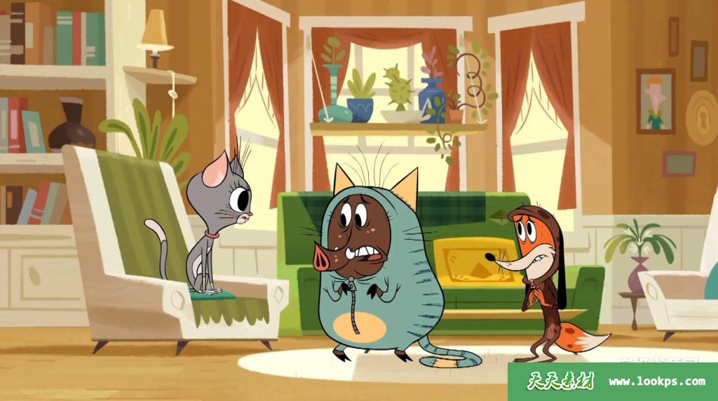 狐狸华盛顿,野猪山姆和他的妹妹尤金(Euegenie),黑鸟苏西,四人觉得野外生活太艰难了,所以伪装成一只狗,一只猫,一只兔子和一只金丝雀,并且找到了一户人家收留他们——利文斯敦(The Livingstones)一家!