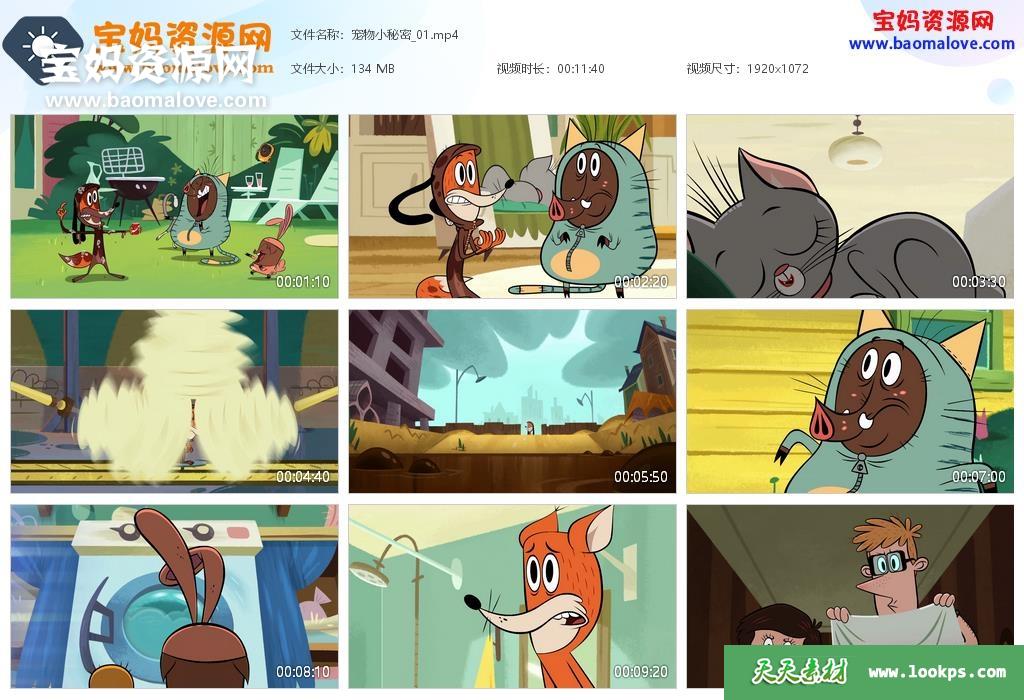 天天资源网收录的动画片《宠物小秘密》Zip Zip中文版 ,全部52集,国语发音,无字幕;每集大小约115M,资源总大小6.39G,单集播放时长约11分钟,1080P高清MP4格式,可以在电视机或电脑、平板、IPAD、早教机、手机等各种设备播放,提供百度云网盘下载。