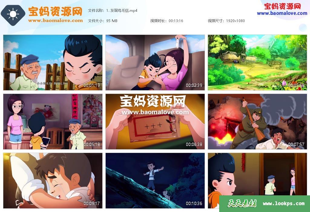 天天资源网收录的动画片《鸡毛信》,全部12集,国语发音,中文字幕;每集大小约90M,资源总大小约1.05G,单集播放时长约12分钟,1080P高清MP4格式,可以在电视机或电脑、平板、IPAD、早教机、手机等各种设备播放,提供百度云网盘下载。