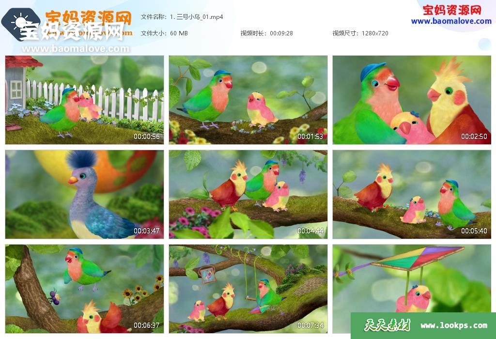 天天资源网收录的动画片《三号小鸟》3rd and Bird中文版,全部51集,国语发音,无字幕;每集大小约140M,资源总大小4.07G,单集播放时长约10分钟,720P(其中有几集是1080P)高清MP4格式,可以在电视机或电脑、平板、IPAD、早教机、手机等各种设备播放,提供百度云网盘下载。