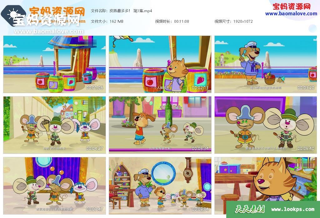 天天资源网收录的动画片《皮普趣多多!》Pip Ahoy!中文版,全部52集,国语发音,中文字幕;资源总大小10.2G,单集播放时长约11分钟,1080P高清MP4格式,可以在电视机或电脑、平板、IPAD、早教机、手机等各种设备播放,提供百度云网盘下载。