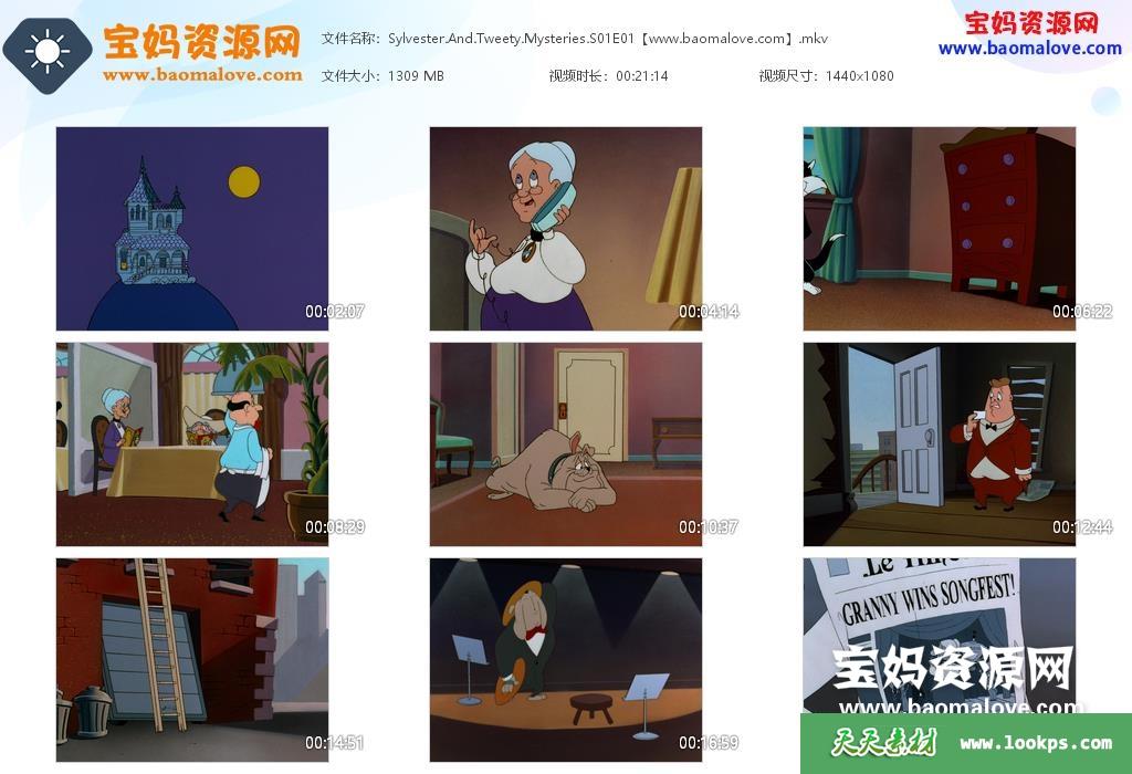 天天资源网收录的动画片《The Sylvester And Tweety Mysteries》傻大猫和崔弟英文版 第一季,全部13集,英语发音,内置英文字幕(可以下载后使用播放器选择字幕或者关闭字幕);每集大小1.26G,资源总大小16.4G,单集播放时长约21分钟,1080P高清MKV格式,可以在电视机或电脑、平板、IPAD、早教机、手机等各种设备播放,提供百度云网盘下载。