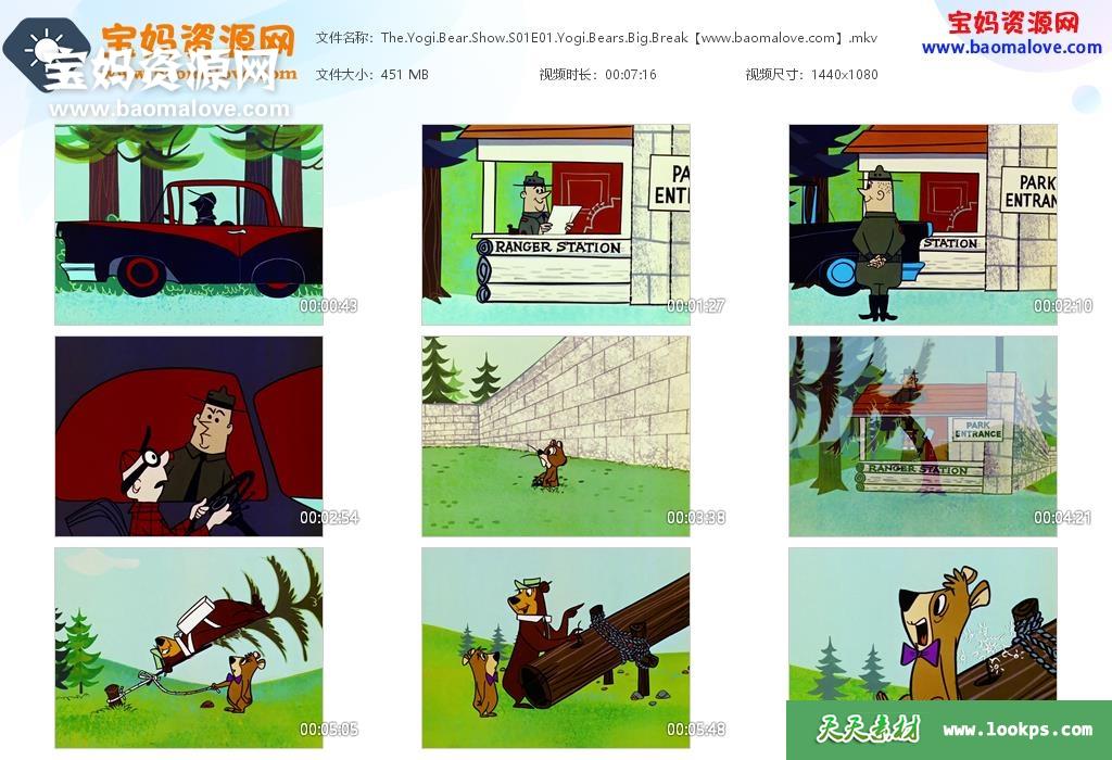 天天资源网收录的动画片《The Yogi Bear Show》瑜伽熊记英文版 第一季,全部36集,英语发音,内置英文字幕(可以下载后使用播放器选择字幕或者关闭字幕);每集大小450M,资源总大小15.6G,单集播放时长约7分钟,1080P高清MKV格式,可以在电视机或电脑、平板、IPAD、早教机、手机等各种设备播放,提供百度云网盘下载。